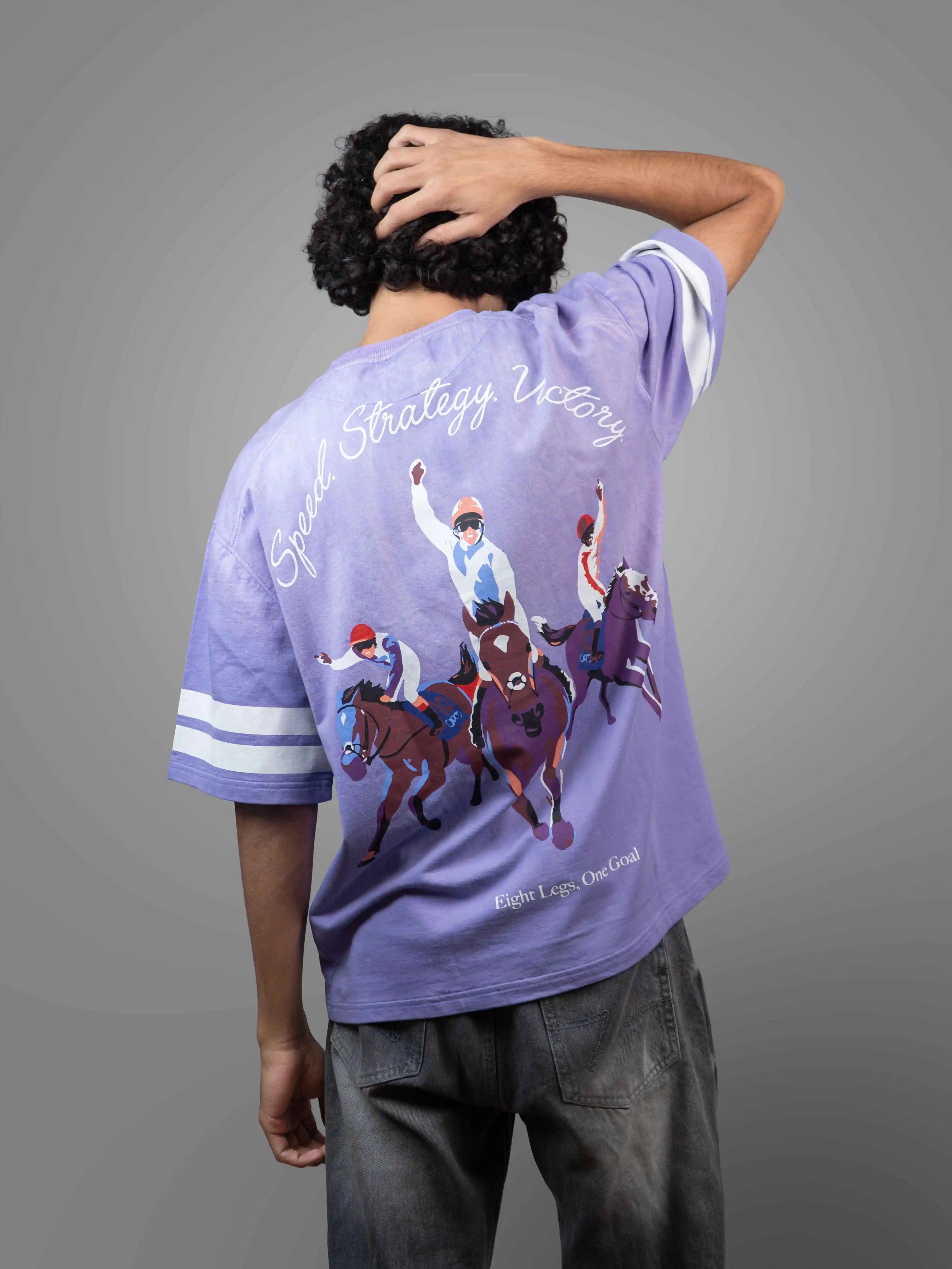 Channel timeless equestrian spirit with the Polo Life Victory Riders Tee by Wibrnt. This unisex, boxy-fit lilac tee fuses sporty energy and vintage polo club style — the clean “Polo Life” text up front, with a bold illustration of polo riders in action on the back, captures the thrill of the game in a wearable form.